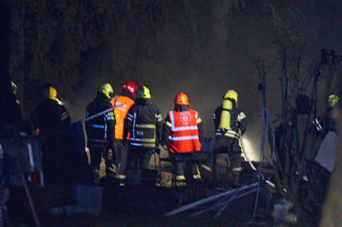 Auran Rajamäentiellä sijaitseva saunarakennus tuhoutui tulipalossa myöhään torstai-iltana (2.10.2025). Kuva: Simo Päivärinta