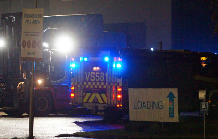 Westaksen kuivaamorakennuksen sähkökeskuksessa syttyi tulipalo myöhään keskiviikkoiltana 8.10. Onnistunut alkusammutus sammutti palon. Kuva: Simo Päivärinta.